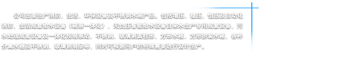 江蘇燁達環(huán)保設(shè)備有限公司坐落在江蘇省鹽城市建湖縣城,東臨黃海之濱,背倚蘇北平原,處于長三角經(jīng)濟一體化和江蘇沿海開發(fā)兩個國家級戰(zhàn)略疊加區(qū)域內(nèi),素有“水鄉(xiāng)明珠”美稱。我公司鑒定走“產(chǎn)、學(xué)、研”相結(jié)合的路子,是江蘇省供水設(shè)備行業(yè)的大型企業(yè)。公司以“一流的管理,一流的研發(fā)設(shè)計,一流的質(zhì)量意識,一流的售后服務(wù)”為宗旨,嚴(yán)格控制原材料質(zhì)素,講求“品質(zhì)是企業(yè)的生命力”的理念,嚴(yán)把質(zhì)量關(guān),從而為客戶提供優(yōu)質(zhì)的供水設(shè)備。公司主要生產(chǎn)消防、生活、環(huán)保設(shè)備及不銹鋼水箱四大類產(chǎn)品。包括增壓、穩(wěn)壓、恒壓及自動化消防、生活成套給水設(shè)備(箱泵一體化),無負(fù)壓智能給水設(shè)備自來水生產(chǎn)專用成套設(shè)備,污水處理成套設(shè)備及一體化預(yù)制泵站,不銹鋼、玻璃鋼圓柱形、方形水箱、方形拼裝水箱,各種分集水器及不銹鋼、玻璃鋼制品等,同時公司可根據(jù)用戶的特殊需要進行設(shè)計生產(chǎn)。燁達人將以科學(xué)的管理、精湛的技術(shù)、可靠的質(zhì)量、優(yōu)良的品質(zhì)向社會各界服務(wù),我們始終坦誠相見,我們當(dāng)然走在最前面······ |
